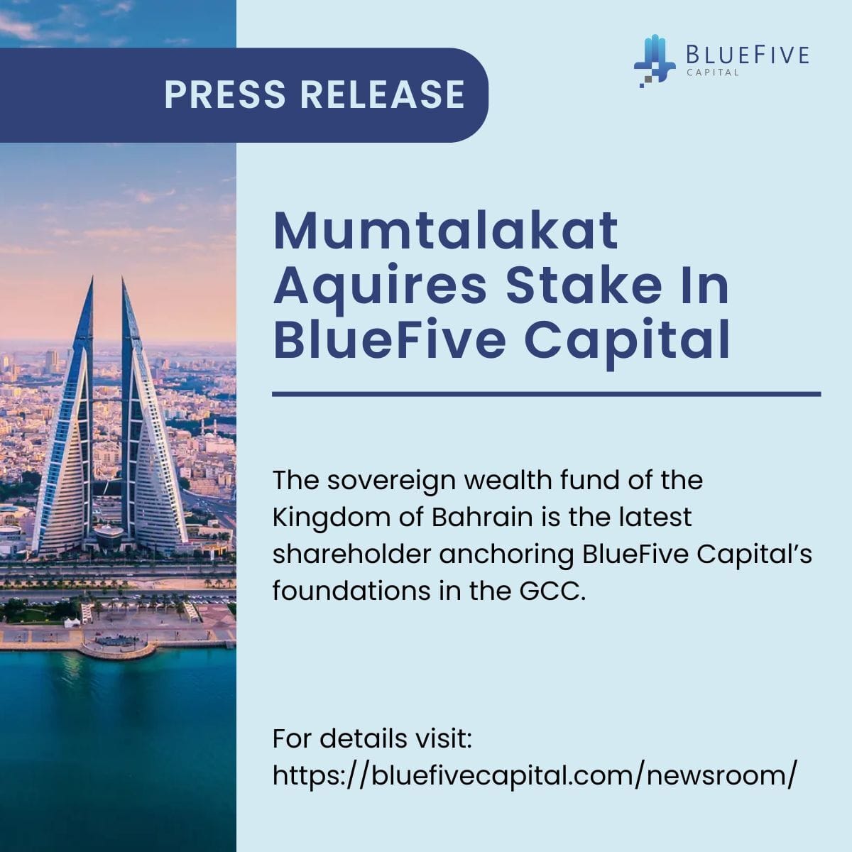 أعلنت “بلو فايف كابيتال” اليوم عن استحواذ “ممتلكات القابضة” البحرينية وهي صندوق الثروة السيادية لمملكة البحرين، على حصة فيها، مما يؤكد التزام “ممتلكات” بدعم الشركات المالية الناشئة.